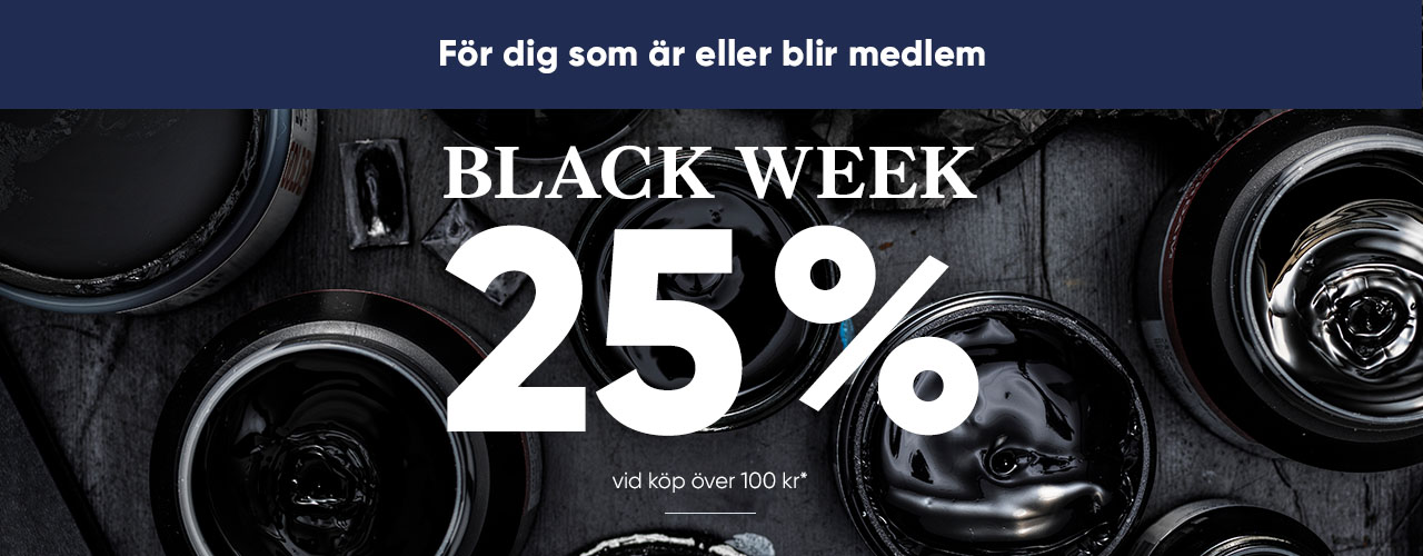 * Rabatten under Black Week gäller för dig som är eller blir medlem vid köp över 100 kr fr.o.m. fredag 21/11 t.o.m. söndag 30/11 2025.