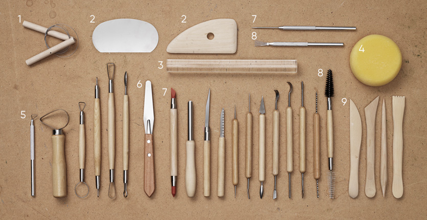 7. Skulpteringsværktøj – Bruges til at lave mønstre, glatte, skabe tekstur, lave huller og lignende i leret.