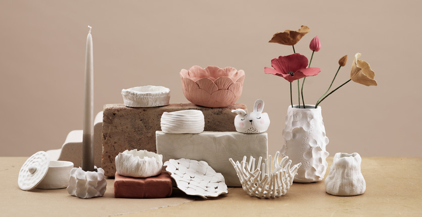Panduro Hobby Clay – Dette hobbyler minder om keramikler, da det føles tungt og ægte at arbejde med. Denne lertype, der minder om keramikler, er velegnet til at lave skåle, vaser, fade, lysestager og skulpturer. Vores Hobby Clay fås i tre farver: hvid, terrakotta og granitgrå.