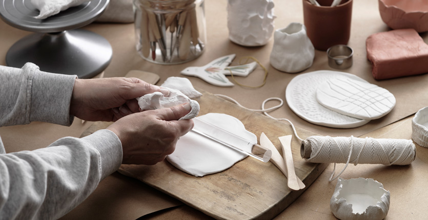 Lufttørrende ler er et fantastisk materiale til forskellige kreative projekter. Efter lidt æltning og formning bliver en klump ler pludselig til en skål, en lysestage eller måske en fantasifuld skulptur. I denne guide gennemgår vi alt, hvad du behøver at vide om lufttørrende ler, såsom forskellige teknikker, du kan bruge til at forme leret, samt forskellige lerværktøjer, og hvad de er gode til. Du finder selvfølgelig også masser af inspiration og ideer til forskellige projekter, du kan lave med leret. Drømmer du om at forme en kaninskål eller en asymmetrisk vase eller måske lave en organisk lampe? Nu kører vi!