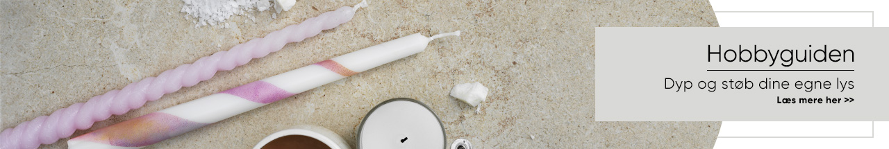 Har du set vores nye lysskole? Den indeholder alt, hvad du behøver at vide for at dyppe eller støbe stearinlys. Men også tips til dekoration, eller hvordan man maler og skriver tekst på færdige stearinlys. Du kan selvfølgelig også lave en helt personlig adventsstage eller lave dine egne flotte lysestager med levende lys. Støb lys og bland en dejlig duft af kanel i, der spreder julestemning i hele hjemmet. Her finder du lysmasse, bivoks, sojavoks, juletræslys, væger og lysestager til at lave dine egne julelys. Vi har selvfølgelig også julebelysning og lyskæder, som du kan bruge til at lyse op i både vinduer og små vinterlandskaber i den hyggelige juletid. Lad julefreden sænke sig med stemningsfuldt lys.