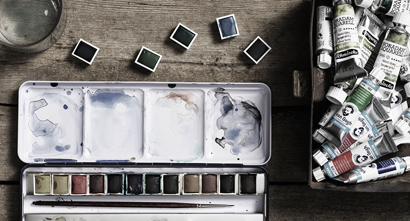 Tuber – det kan overraske, men akvarelfarver kan, som olie- og akrylfarver, faktisk også fås i tuber. Det er ikke så almindeligt som half- og hel pans, men de fleste store akvarelproducenter leverer også akvarelfarver på tube.