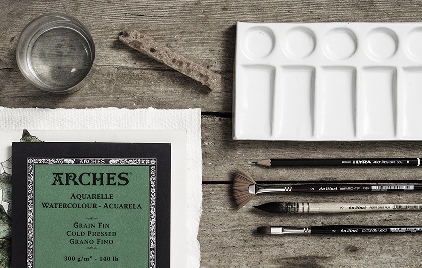At have tilgang til vand, er en forudsætning for at kunne male akvarel, især hvis man vil prøve kræfter med vådt i vådt-teknikken (læs mere længere nede). Vand er også vigtigt, når penslerne skal skylles, så dine farver ikke blandes i forkerte nuancer. Akvarelfarver er ikke nær så tyktflydende som akrylfarver (som kan ødelægge pensler, hvis farven tørrer ind), men det er stadig vigtigt altid at skylle og tørre sine pensler omhyggeligt efter brug.