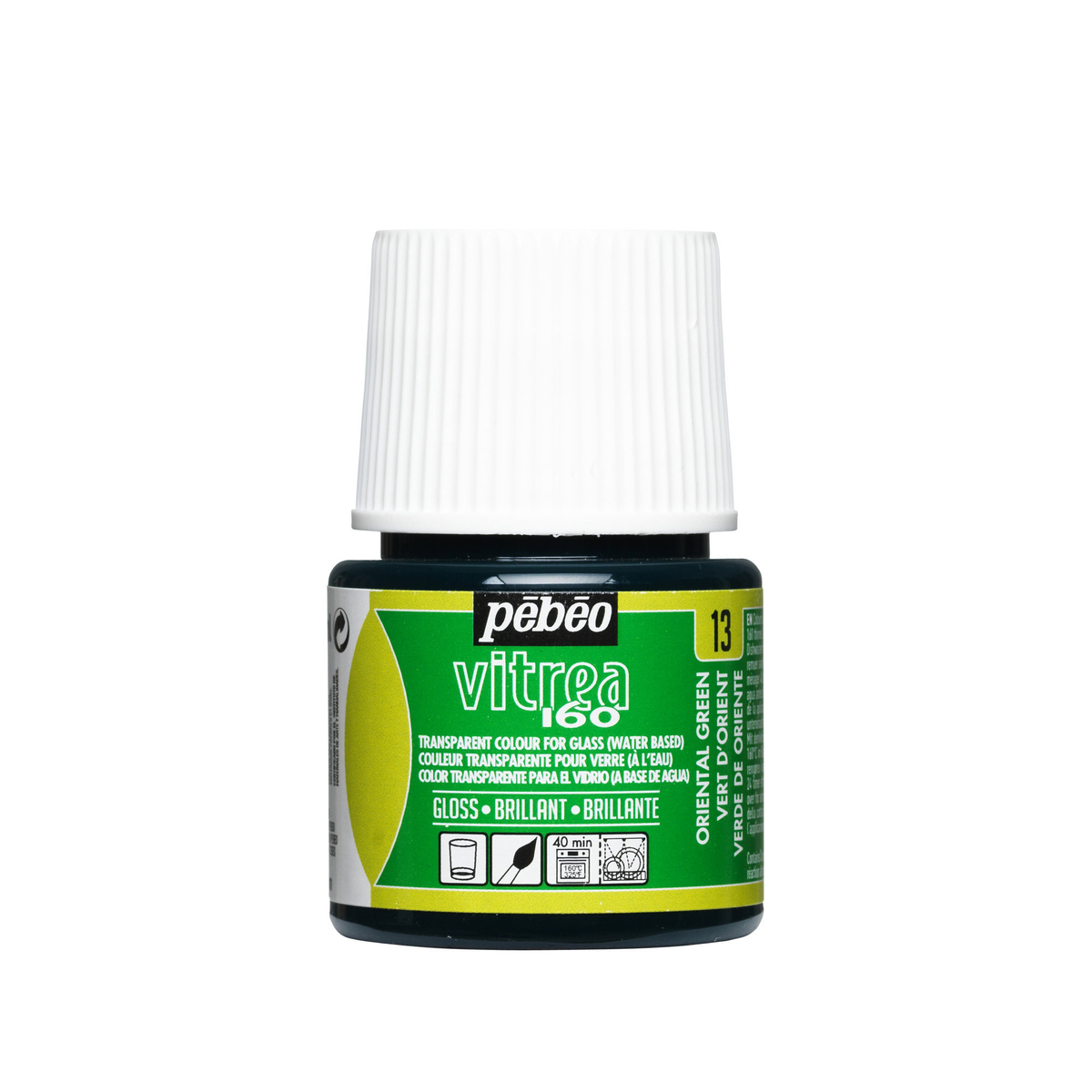 Vitrea 160 er en glasfarve, der giver et rigtigt godt og flot resultat. Det er meget vigtigt at rense den overflade, der skal males, omhyggeligt med et fedtopløsende middel. Undgå derefter at røre ved de flader, der skal males. Lad farven tørre i 24 timer, og hærd den i en alm. ovn ved 160°C i ca. 40 min. – så kan den vaskes i opvaskemaskinen ved 55-60°C. Læg ikke malede og hærdede glas i blød i længere tid. Bemærk! Brug ikke Vitrea 160 på krystal- eller Duralexglas. De tåler ikke hærdning i ovn. Grøn