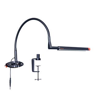 Lampen monteres nemt på et af de to medfølgende beslag – en klemme til et staffeli og en klemme til et skrivebord osv. Derefter skal du blot placere den 51 cm lange, bøjelige "hals", hvor du har brug for den. Selve lampehovedet er 40,5 cm langt og kan drejes 260 grader. Lampen har tre lysindstillinger: dagslys 6000° K, koldt lys 4000° K og varmt lys 2700° K.