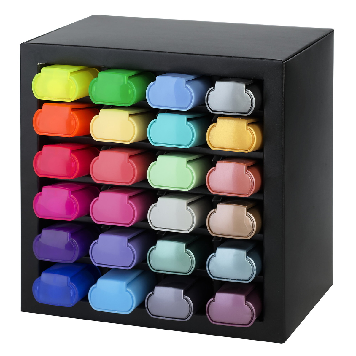 <Pennerne leveres i en sort papholder, som giver et praktisk overblik over alle farver og opbevarer pennene i den rigtige vinkel.