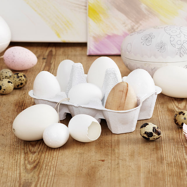 Mikä symboloisi pääsiäistä enemmän kuin muna? Munia voidaan koristella, syödä, maalata, täyttää pääsiäiskarkeilla ja kätkeä. Munien maalaaminen on erittäin hauskaa, mutta on niin paljon muutakin, mitä voi tehdä! Voit koristella pahvimunia, puumunia, polystyreenimunia ja muovimunia helmillä, kimalteella, langoilla, decoupage-tekniikalla ja askartelumassalla. Vaikka useimmat munat täytetään pääsiäiskarkeilla pääsiäispupun munajahtia varten, meillä on myös paljon pieniä askartelutarvikkeita ja muuta hauskaa, mitä voit laittaa useisiin erikokoisiin avattaviin pahvimuniin.