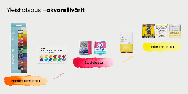 Harrastelijalaatu – alempi laatu, joka sopii harrastusprojekteihin ja aloittelijoille, jotka haluavat kokeilla maalaamista akvarelliväreillä.