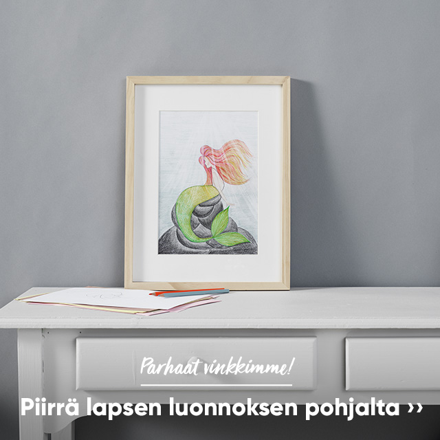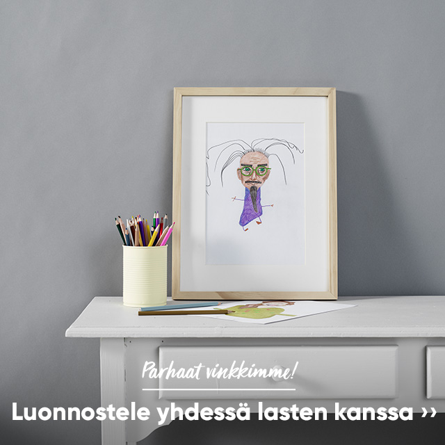 Piirrä luonnos lapsen raapustelujen pohjalta tai anna lapsen täydentää oma luonnoksesi valmiiksi. Yhteistuumin voitte saada aikaan hauskoja ja yllättäviä taideteoksia!