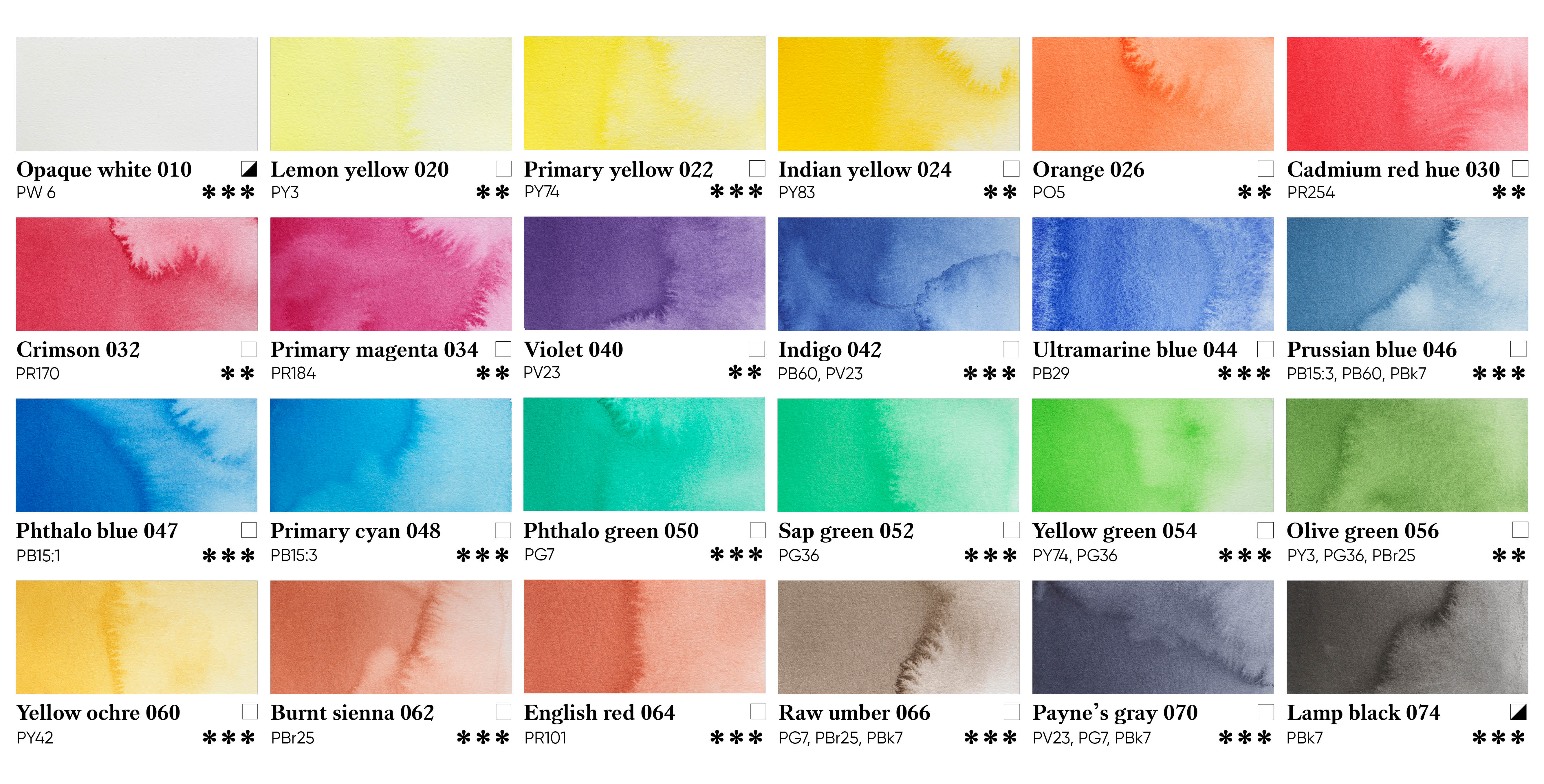 Akvarellivärit on huolellisesti kehitetty vastaamaan akvarellitaiteilijan korkeita vaatimuksia sekä väripigmenttien että valonkeston suhteen. Sarjaan kuuluu 24 kaunista sävyä kokonappeina, jotka on täytetty kolmeen kertaan. Tämä takaa tasaiset ja voimakkaat pigmentit, jotka säilyttävät kirkkautensa pitkään. Osta Kreatima Watercolour -värejä yksittäisinä kokonappeina tai tartu tilaisuuteen ja hanki 10 värin aloituspakkaus kampanjahintaan.
