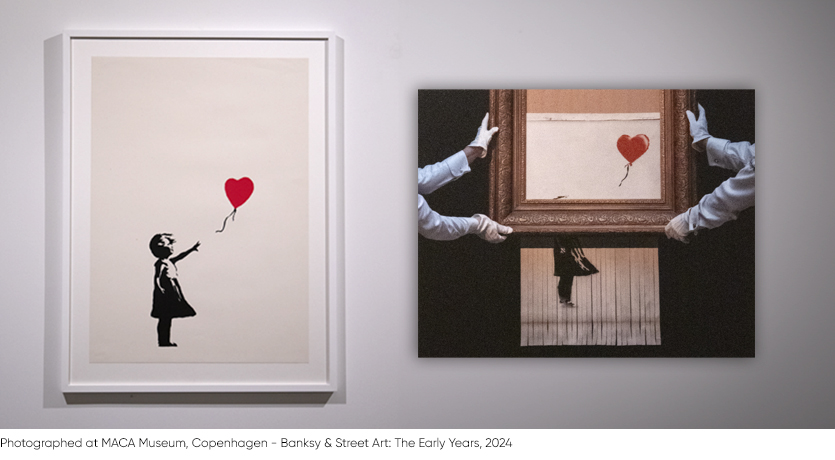 Banksy-työ sai paljon huomiota vuonna 2018, kun yksi ”Balloon Girl” -teoksen versio piti myydä miljoonalla punnalla Sothebyn huutokaupassa Lontoossa. Kiistanalaista ei oikeastaan ollut maalaus itse, vaan se mitä tapahtui, kun tarjous hyväksyttiin ja maalauksen piti vaihtaa omistajaa. Maalaus päätyi paperisilppuriin ja tuhoutui osittain. Tämä ”vitsi” oli esillä mediassa kaikkialla maailmalla, ja teoksen arvon sanotaan vähintään kaksinkertaistuneen. Maalauksen uudeksi nimeksi tuli sen jälkeen ”Love is in the bin”, ja se myytiin vuonna 2021 noin 18 miljoonalla punnalla. Banksy itse sanoi, että tarkoitus oli ollut silputa koko työ sillä perusteella (mahdollisimman hyvin käännettynä): ”Jonkin tuhoaminen on myös luova oivallus”.