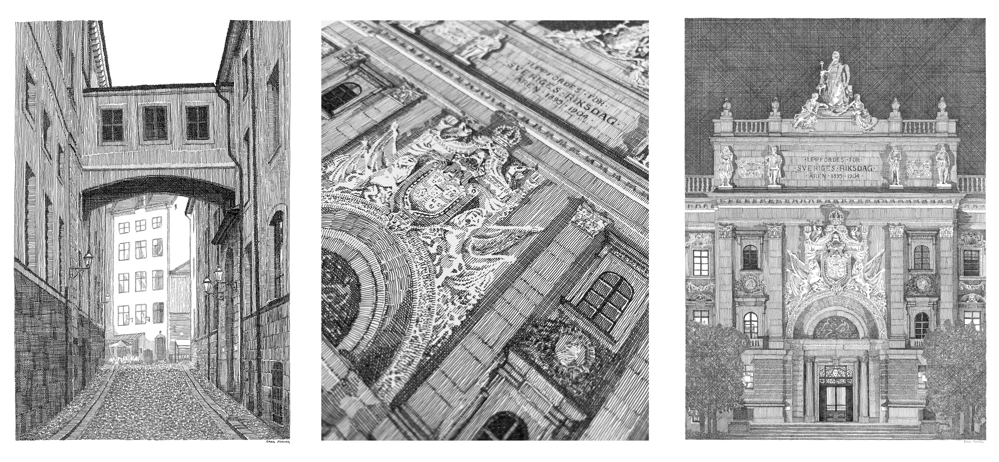 Ohuista ja tarkoista viivoista muodostuu hämmästyttäviä kaupunkikuvia. Emma Moringin työt muistuttavat meitä siitä, kuinka lukuisat pienet ja pelkistetyt mustavalkoiset viivat voivat antaa upean lopputuloksen. Tutustu Emman tarinaan, joka johdattaa meidät heikosta itsetunnosta omaan tyyliin, jossa luonnostellaan musteella sekä tarkoilla ja veitsenterävillä viivoilla.