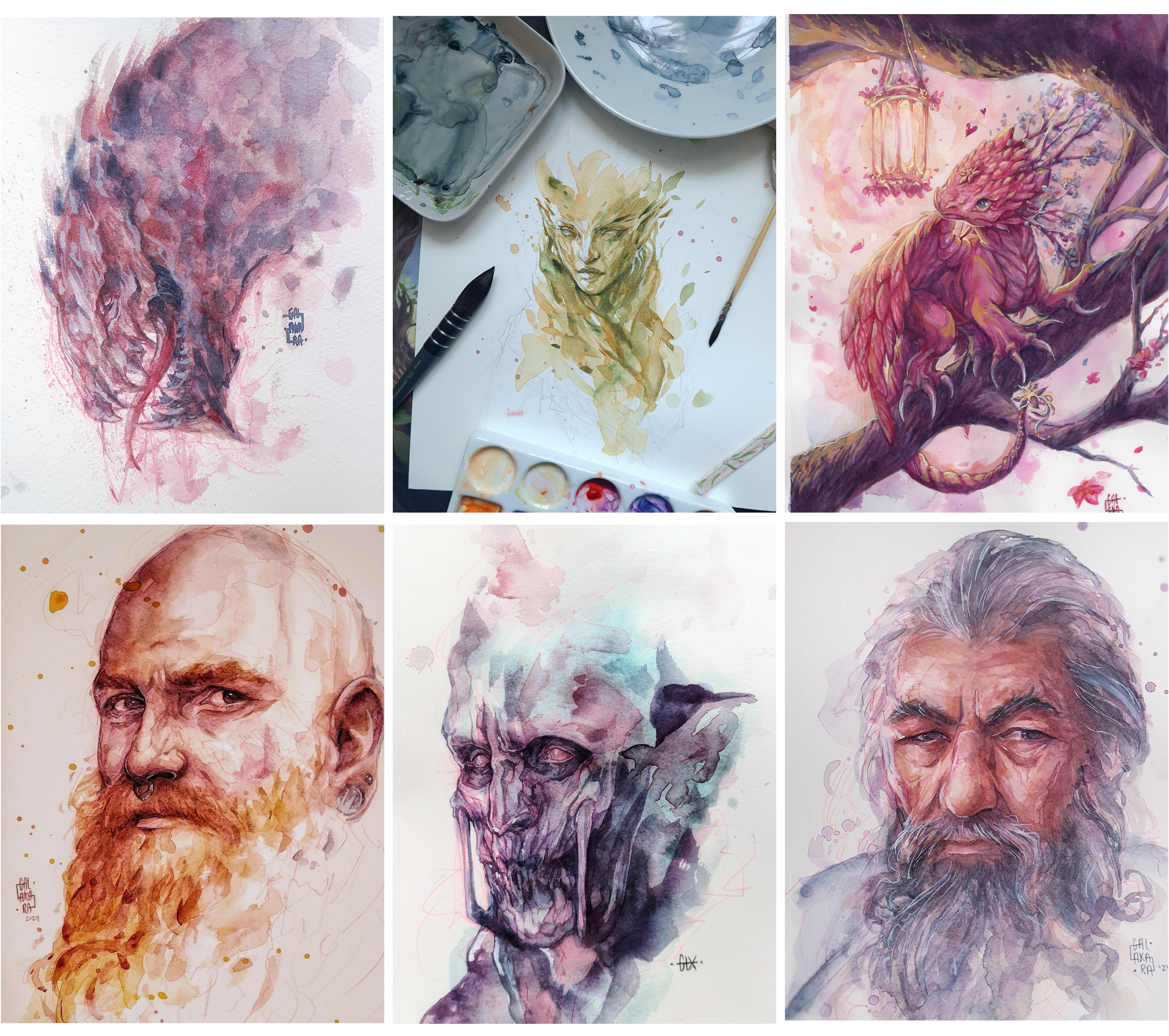 Galaxaran jännittävät, fantasian ja luonnon innoittamat työt hurmaavat hetkessä. Avaruus, lohikäärmeet ja hahmot heräävät eloon pehmeiden akvarellivärien, veden ja etenkin hänen mielikuvituksensa ja monien ideoidensa ansiosta. Tutustu hänen tarinaansa täällä – aina lapsuudessa isoäidin kanssa vietetyistä maalaushetkistä tämän päivän croquis-piirustuksiin (elävä malli, jolla on vaatteet päällä), inspiroiviin elokuvahetkiin ja ajatukseen siitä, että kaikki epäonnistuvat joskus.