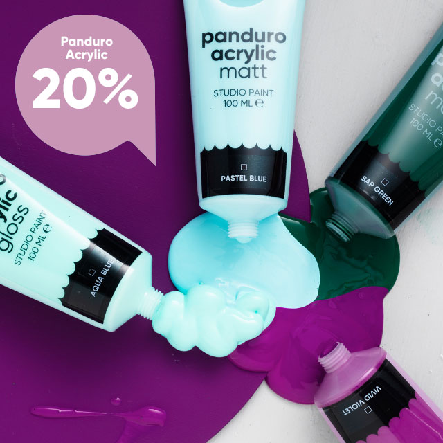 Finn en ny kreativ hobby med akrylmaling! Enten du er nybegynner eller proff, kan du lage fantastiske malerier med akrylmaling og enkle teknikker. Akkurat nå får du 20 % rabatt på både Panduro Acrylic- og Kreatima Acrylic-sortimentet, samt på alle Panduro- og Kreatima-lerret.* Grip sjansen, finn frem penselen og mal ditt neste mesterverk med akrylmaling!