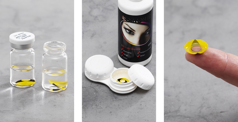 La linsene ligge i linsevæske i fire timer før du bruker dem.