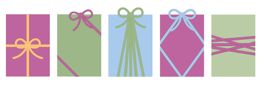 Ved å variere hvordan du knyter gavebåndet rundt pakkene, kan du oppnå forskjellige stiler. Velg det som passer best til pakken din, og prøv forskjellige stiler til forskjellige pakker.