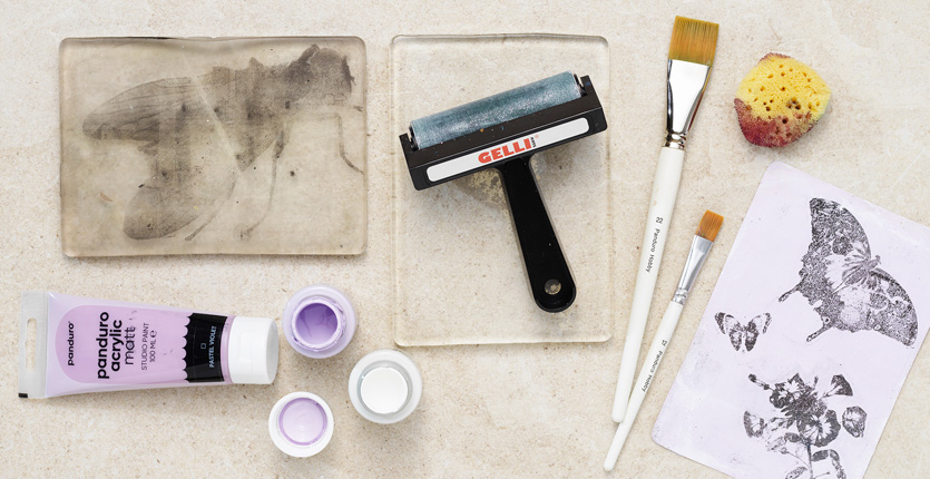2. Rull ut akrylmaling på Gelli Arts-platen.
