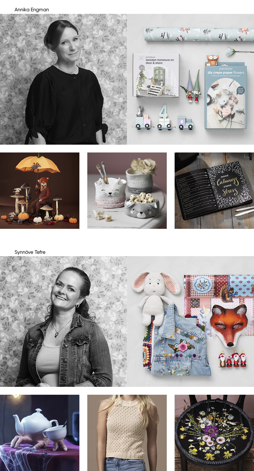 Er du en av dem som noen gang har lurt på hvordan det egentlig går til når en av Panduros hobbyaktiviteter, mønstre eller kanskje et DIY-kit ser dagens lys? Du er ikke alene, og for å tilfredsstille nysgjerrigheten vår avtalte vi et møte med Panduros inhous-team for design- og produktutvikling på hovedkontoret i Malmö. Her kan du møte menneskene bak Panduros kreative produkter, mønstre og ideer. Det er disse kreative sjelene som designer mønstre til gavepapiret og stoffene våre, som kommer opp med ideer til nye DIY-kit, som tester nye malinger, leirer, pensler og alt i mellom, slik at vi kan tilby det beste utvalget innen hobby og kreativitet. Vi møtte dem for å få innsikt i deres kreative prosess, hva kreativitet betyr for dem, og hva det faktisk vil si å være kreatør hos Panduro.