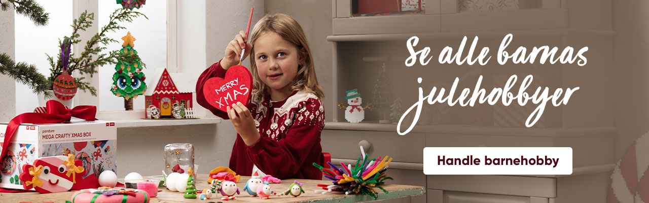 Gjør klart for julens beste hobbykos med Panduros unike DIY-kit! På vårt hobbyverksted i Malmö utvikler, designer og testlager vi settene både på langs og på tvers, og det eneste du trenger å legge til er verktøy og lim. Akkurat nå får du som er medlem i We are Panduro 33 % rabatt* på alle julens DIY-kit på nett.