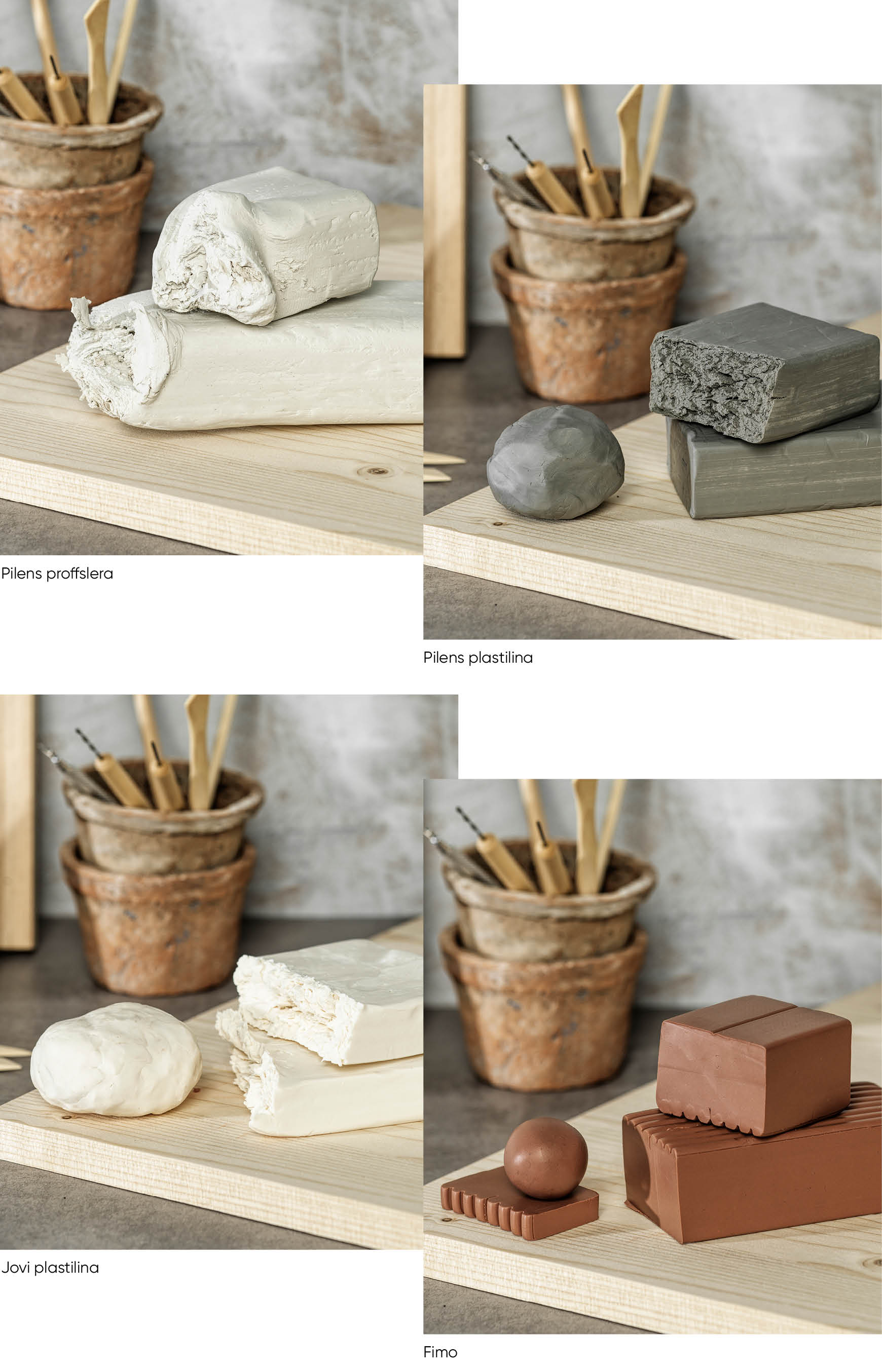 Piles proffleire – modelleire av høy kvalitet som kan brukes til all slags modellering, formgivning, skulptering, modellbygging, avstøpning, tetting av former og mye mer. Leiren herder ikke, men kan varmes og smeltes.