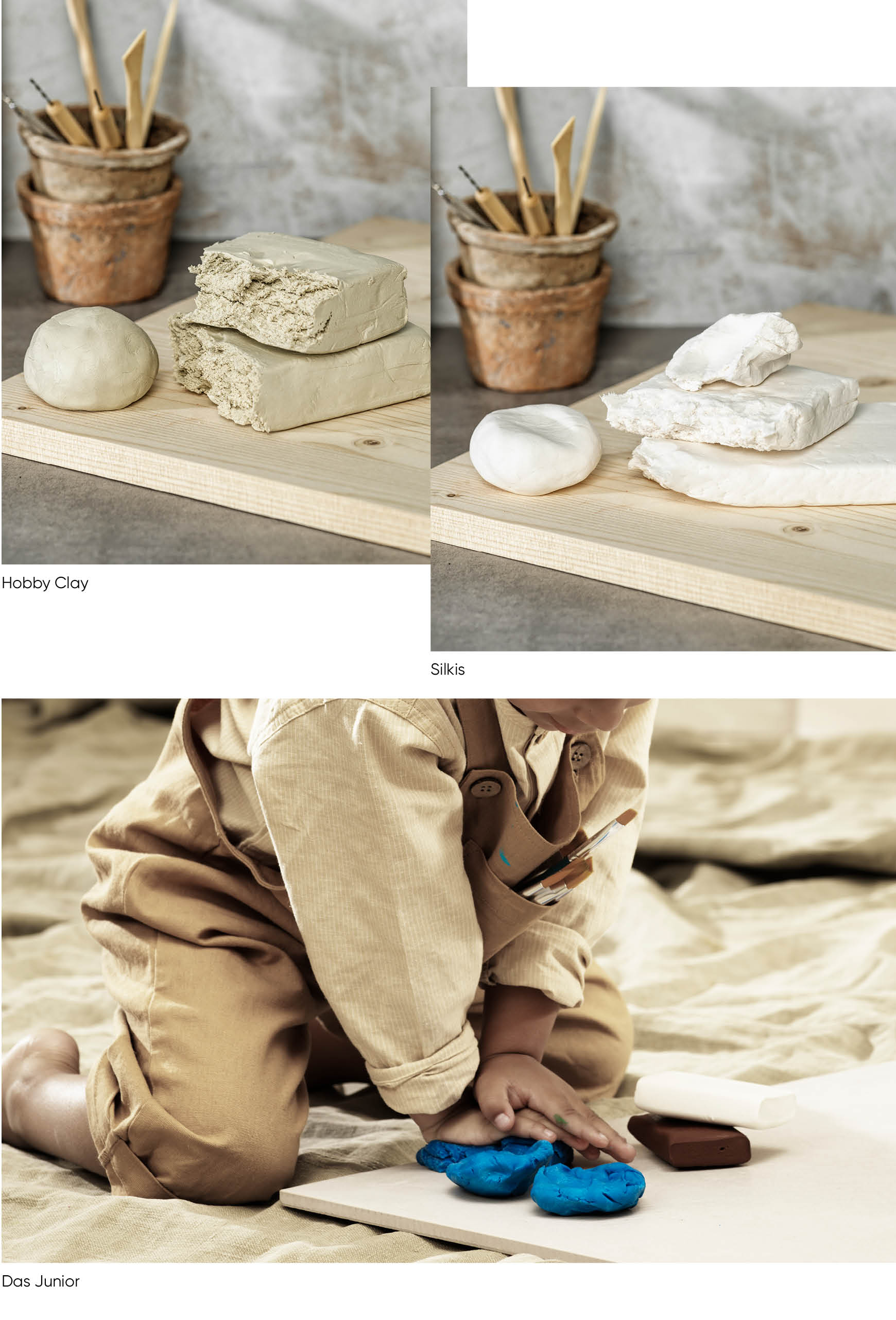 Das barneleire – myk og smidig modelleire som er klar til bruk. Finnes i mange fine farger som kan blandes til alle regnbuens nyanser, og bevarer fargen også når de har tørket. Etterlater ingen flekker og er enkel å vaske vekk, også fra de fleste tekstiler, på 40 °C. Mineralbasert og glutenfri, og leveres i emballasjer som kan lukkes. Glimrende til skoler, og anbefales til barn fra 3 år.
