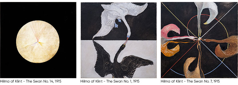 Verkene som Hilma skaper i denne serien gjenkjennes på den gjennomgående tydelige horisontale oppdelingen. Ofte - men ikke utelukkende med svaner, midt på lerretet, for å skille motsetninger som det mannlige og kvinnelige eller liv og død.