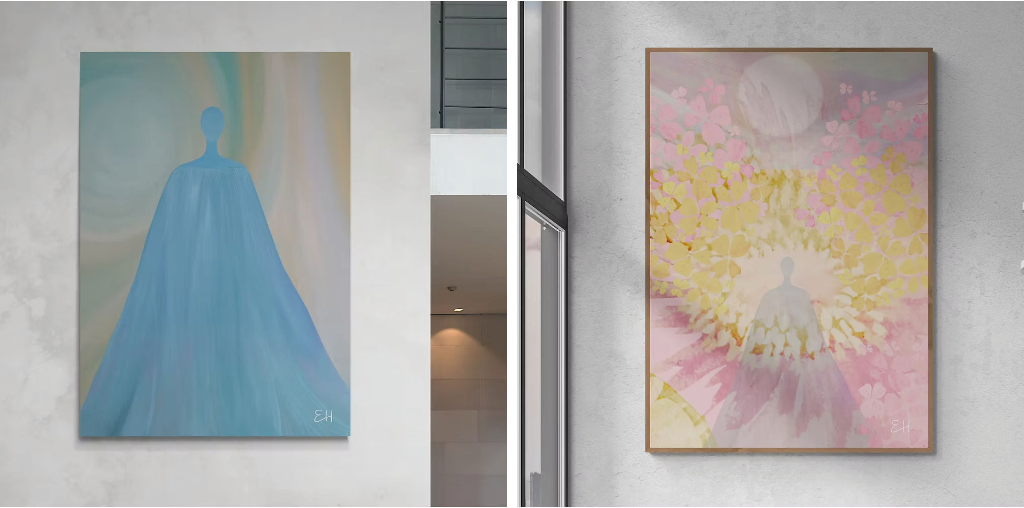 Besøk Instagram-kontoen hennes @artbyemmahiltunen eller nettsiden https://www.artbyemmahiltunen.se/.