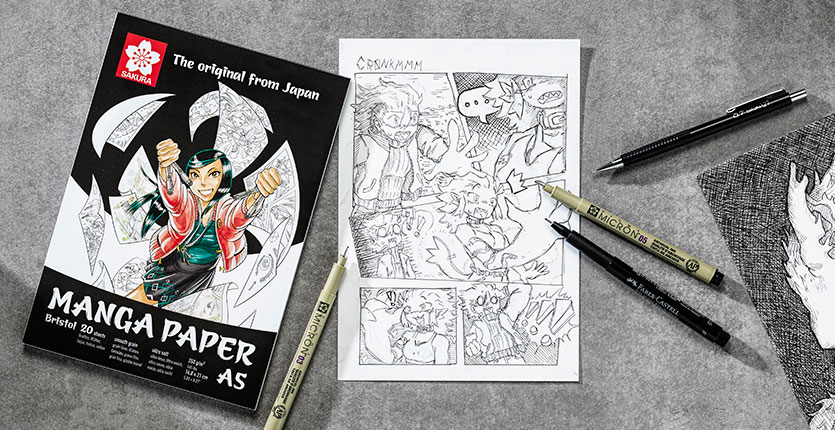 Tegnetusjer/drawing pens/Fineliner – svarte tusjer til konturer, linjer og skravering. Faber-Castell, Pigma, Uni Pin, Panduro og Copic har alle finelinere som er egnet for serietegning.