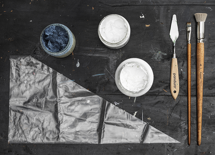 Du kan også bruke vår Modeling Paste som den er hvis du bare ønsker en hvit farge som base. Lag spennende mønstre rett fra boksen, eller fil/mal på modelleringspastaen når den har tørket. For eksempel er det lurt å bruke en sprøytepose til å spraye malingen i runde og jevne lag.