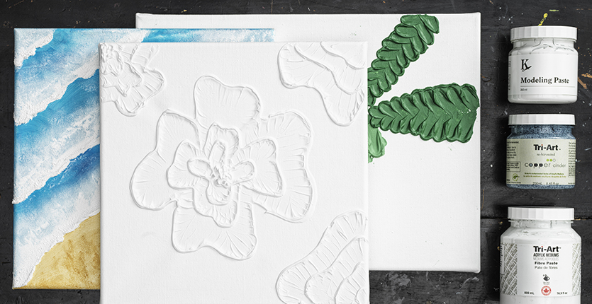 Til slutt kan du bruke såkalt fiberpasta (fiber paste) for å oppnå en grovere tekstur. Her har vi brukt et medium fra Tri-Art som er veldig grovkornet. Dette passer utmerket til mange fenomener og innslag du kan finne i naturen. Sjekk ut alle videoene våre nedenfor og se hvordan vi gikk frem for å lage blader, blomster og bølger!