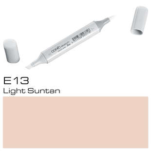 Copic Sketch E, tusjpenner i jordtoner (earth). Copic Sketch er en tusjpenn for fargelegging med to ulike spisser, medium bred (2–6 mm) og penselspiss (Super Brush). En alkoholbasert og hurtigtørkende spesialpenn som er permanent og syrefri. Fargekodede hetter. Løse spisser kan kjøpes som ekstra tilbehør. Pris per stk. Light Suntan