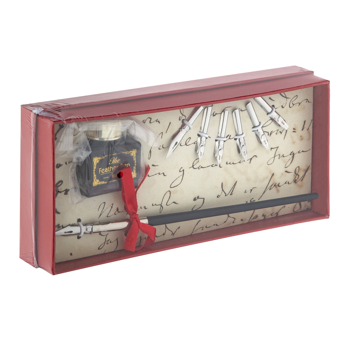 Dypp pennen i blekket og føl historiens vingeslag. Et brev som er skrevet på et bedre papir med en penn som denne – det vil mottakeren aldri glemme. Kalligrafi, kunsten å skrive vakkert, tar litt tid å mestre, men gir både to og glede. Settet inneholder følgende: et penneskaft med standardformet stålstift / dyppstift + en reservestift av samme type. I tillegg 5 stifter i forskjellige bredder. En flaske med 15 ml blekk følger også med (ikke vannfast).