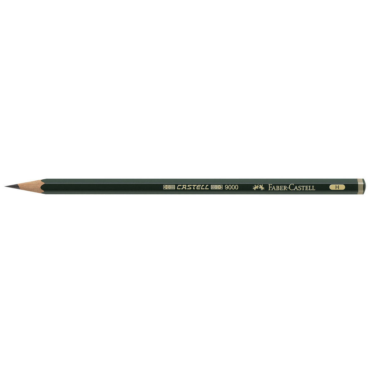 Denne blyanten av høyeste kvalitet er en klassiker blant blyanter. I mer enn 90 år har den legendariske grønne blyanten Castell 9000 vist hva den duger til: å skrive med, til teknisk tegning, grunntegning, skissearbeid og skyggelegging. Garantert enkel å spisse. Kraftig påføring og drøy. Alle blyanter har en hardhetsgrad som er en viktig faktor i forbindelse med alt kunstnerisk tegnearbeid. Foran bokstaven H står en serie tall som øker med stigende hardhetsgrad. Bokstaven B angir mykhet. Den mykeste blyanten er 8B, som har en høy grad av sverte. Den sekskantede grafittblyantens kropp er lakkert med vannbasert lakk. Blyantene fremstilles i Tyskland.