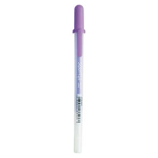 Gelly Roll Souffle, gelpenn fra Sakura i opake, matte pastellfarger med en svak 3D-effekt i blekket. Gelly Roll er en vannbasert, arkivbestandig, syrefri penn som egner seg ypperlig til hobbyaktiviteter og håndverk. Den kan brukes på papir (også mørkt papir) eller andre glatte overflater som for eksempel plast, glass eller metall der du ønsker en relieffeffekt. Best resultat oppnår du ved å skrive eller tegne langsomt, slik at blekket rekker å legge seg tykt og tørke. Det kan ta opptil 10 minutter. Blir det for tykt, kan du jevne til med fingeren. Pennen oppbevares liggende når den ikke brukes. Pris per stk. Purple.