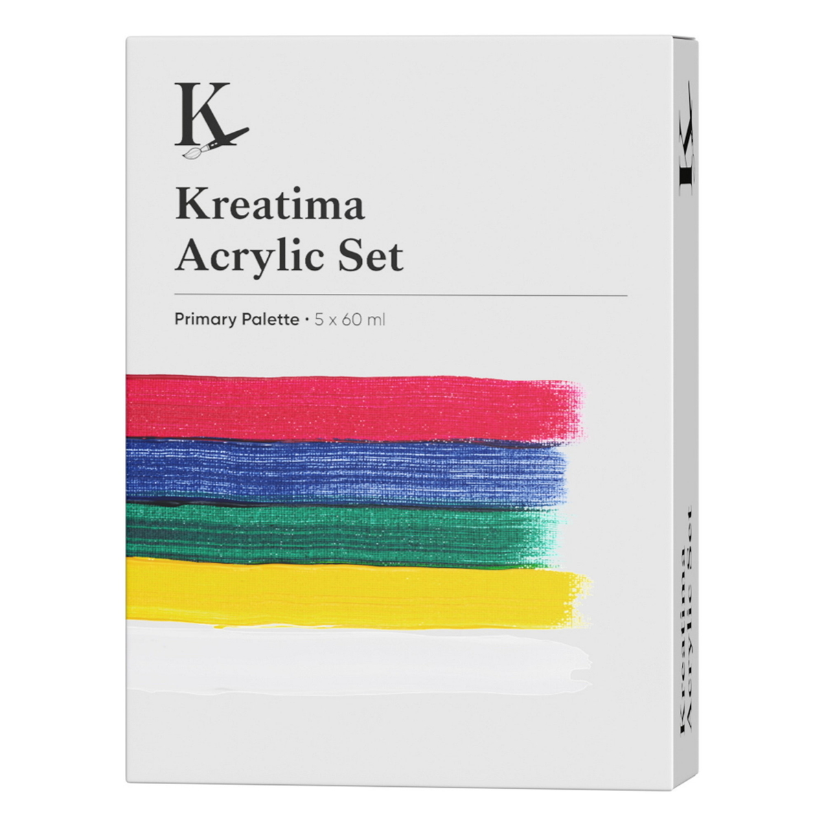 Settet inneholder et utvalg fra den store malingsserien som omfatter 47 farger, deriblant iriserende og fluorescerende farger, og til den finnes det dessuten en serie malemedier som er spesielt beregnet for å få frem akkurat det du ønsker av Kreatima Acrylic-malingen. Malingen produseres av Tri-Art og fungerer selvfølgelig med alle deres medier og malinger.