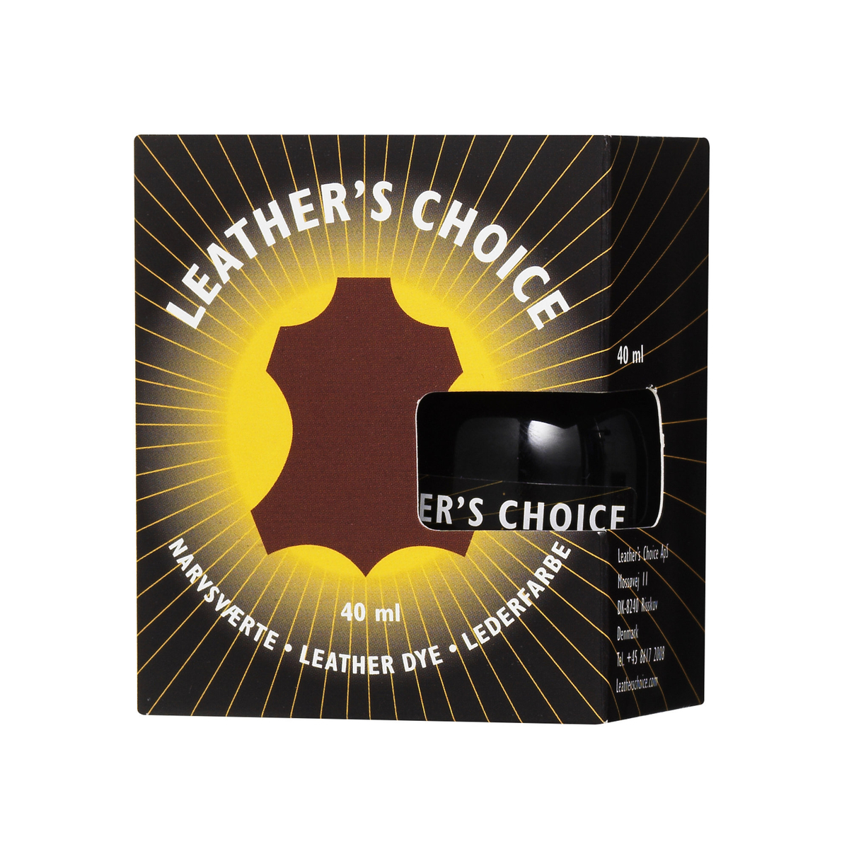Bruksanvisning: Læret må være avfettet, rent og tørt- Vask eventuelt av med sprit før farging. Lær som er behandlet, må vaskes med gallesåpe eller deglazer. Rist flasken godt. Prøv deg alltid frem på et ikke synlig sted før du begynner. Påfør lærfargen med en klut eller svamp, og bruk rikelig med farge. Gjenta behandlingen til du oppnår ønsket fargedybde. Læret kan pusses etterpå med en ren, myk klut. Det fjerner eventuell overskuddsfarge. Etter denne prosessen vil læret virke veldig tørt og rutt. Vi anbefaler sterkt at du setter inn det du har farget med Leather’s Choice lærfett (se 107728) med fett igjen. Inneholder: Etanolpropan-2-ol, 2-(butoxyethoxy)etanol, 1-metoxy-2-propanol.