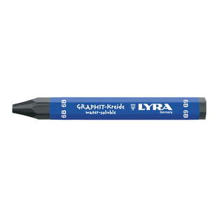Grafittkritt fra Lyra, som er laverbart i vann. Grafittkritt med høy konsentrasjon av grafitt. Både spissen og hele krittets lengde kan brukes. Etter at du har tegnet, kan du pensle med vann for å oppnå ulike effekter. Krittene er 120 mm lange og har en diameter på 12 mm. Finnes i ulike hardhetsgrader. 6B = Mykt. Pris per stk.