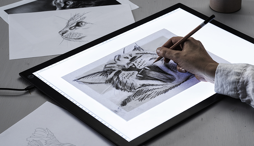 Är du ny inom det konstnärliga och vill öva på linjer och former blir ett ljusbord till hjälpande vän i nöd. Då kan du placera ett annat motiv under ditt papper och låta ljuset flöda igenom så att du kan fylla i dina linjer. Metoden att rita av ovanpå, så kallad kalkering, fungerar fint när du ska öva på någon specifik detalj till dina framtida alster.
