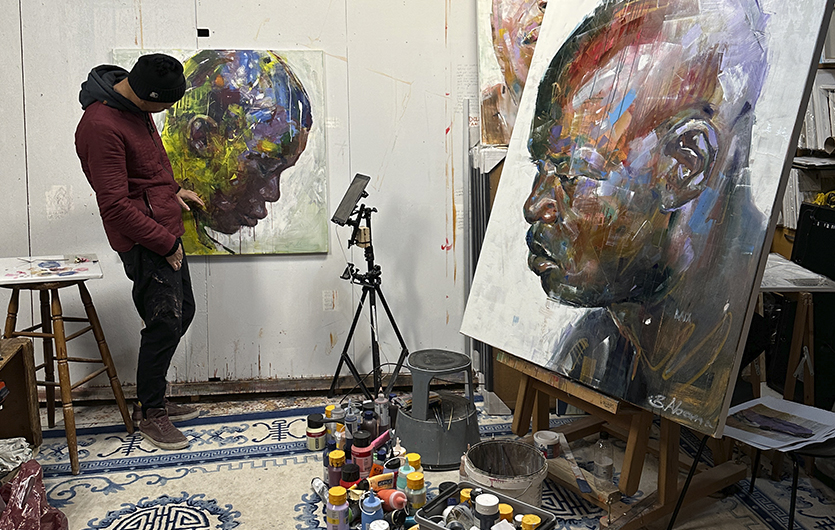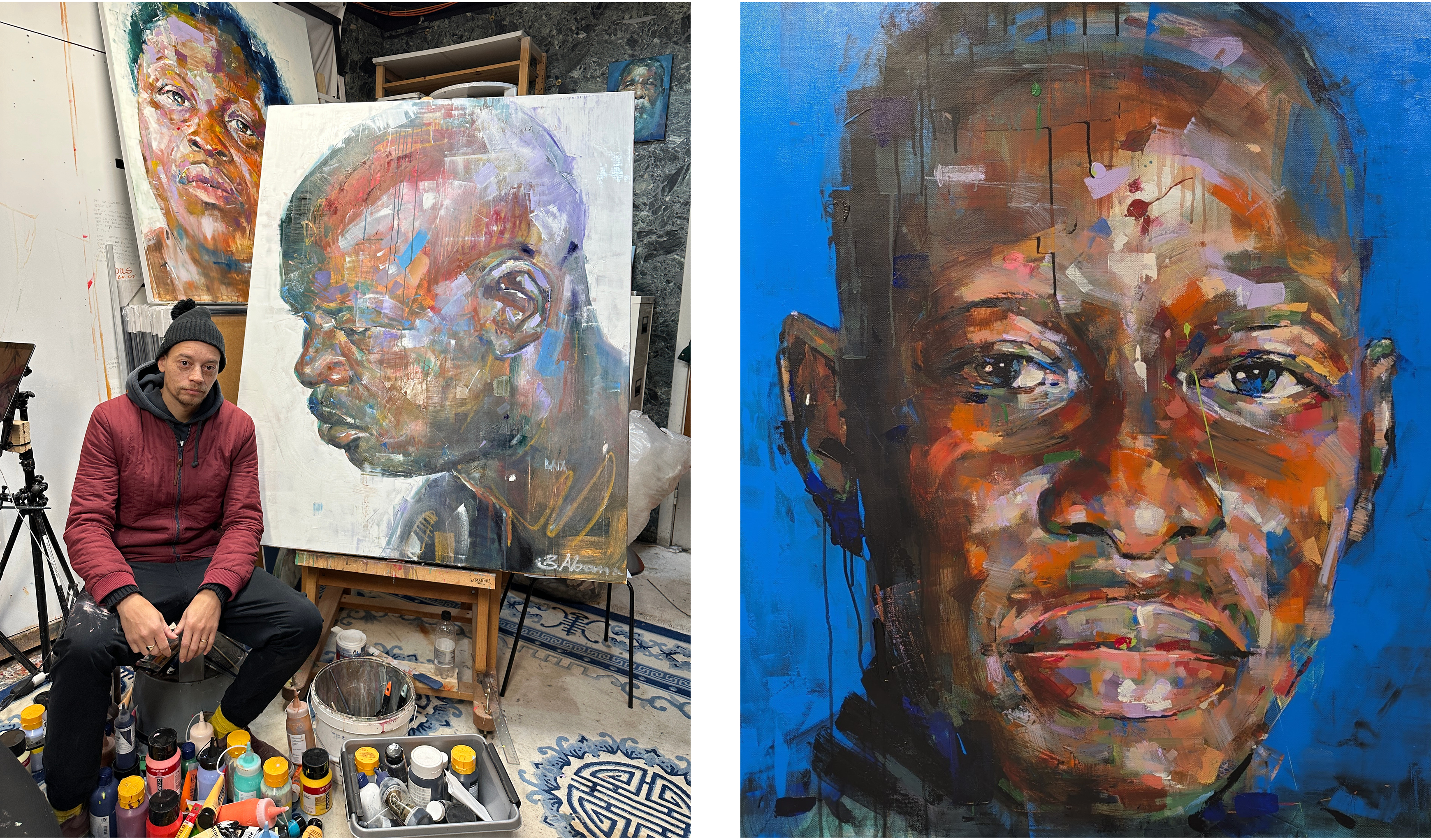 Vad får man om man kombinerar neoklassisk komposition med färgstark storytelling? Resultatet är de kraftfulla verken som Benjamin Abana målar. Han blandar gärna människors historier och känslomässiga uttryck tillsammans med pigmentrika kulörer såsom blått, orange och gult. Men vägen har inte alltid varit spikrak – här är hans berättelse från tvivel på sitt konstnärskap till att få måla under det danska tronskiftet.