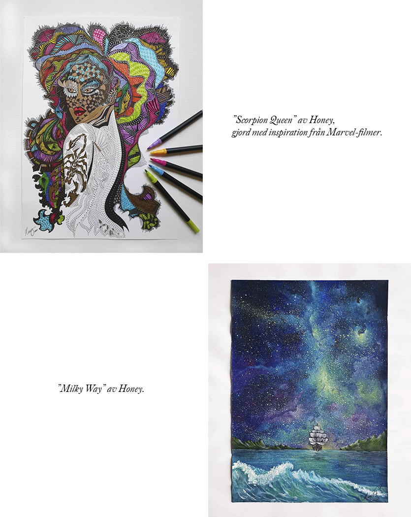 Idag hittar du Asals vackra verk på hennes Instagramkonto @honeyff_art.