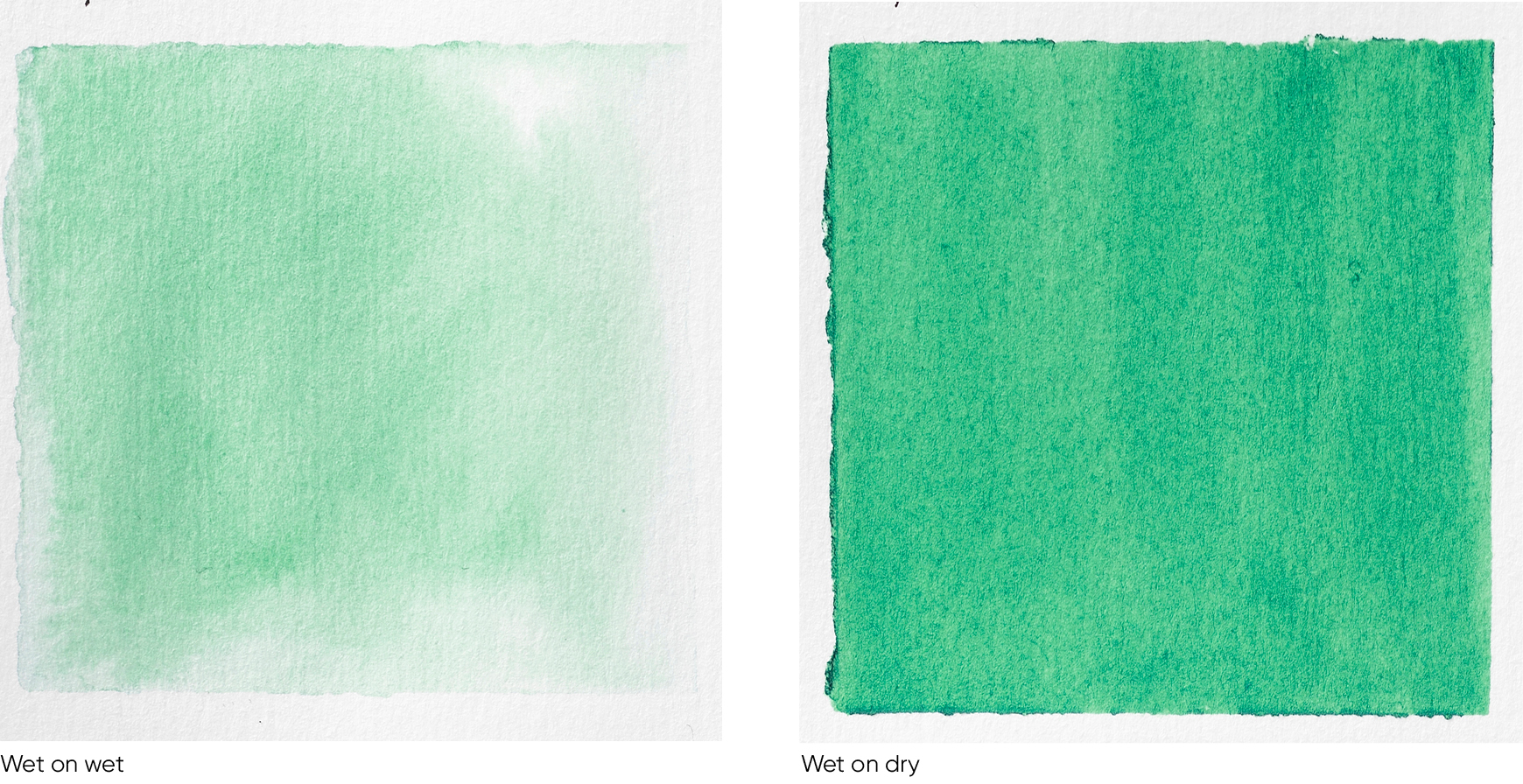 Arbetar du med tekniken vått på torrt, så målar du i stället din akvarellfärg på ett akvarellark eller block – utan att blöta ner det på förhand. Den här tekniken öppnar upp för skarpa kanter och detaljer då färgerna inte har samma möjlighet att flöda fritt som när vätska möter vätska. Vissa föredrar att kombinera de olika teknikerna, mycket beroende på vad det är som ska avmålas i akvarellfärg för stunden.