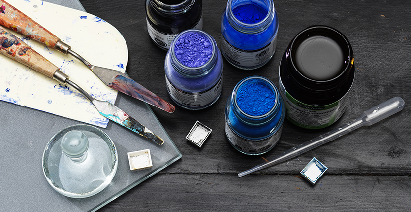 Förr i tiden tillverkade konstnären sin egna konstnärsfärg genom metoden att ”riva” färg. Idag slipper man i stort sett de flesta bestyr som dåtidens skapare fick beblanda sig med, genom att de flesta färger i handeln är färdigblandade och redo att användas direkt på duken. Men önskar du att ta din färgprocess till nästa nivå går det faktiskt med några komponenter att ta fram din alldeles egen färg – i denna artikel härlig och vattenburen akvarellfärg.