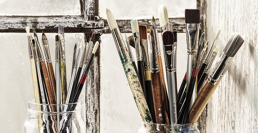 Nu när vi har gått igenom ett par olika begrepp inom penselvärlden är det dags att knyta pensel till rätt målarfärg. Väljer du transparent och snabbtorkande akvarell, eller den mer tidskrävande men glänsande oljefärgen? Det finns något för alla – och ibland passar vissa penslar till flera tekniker; testa dig fram!