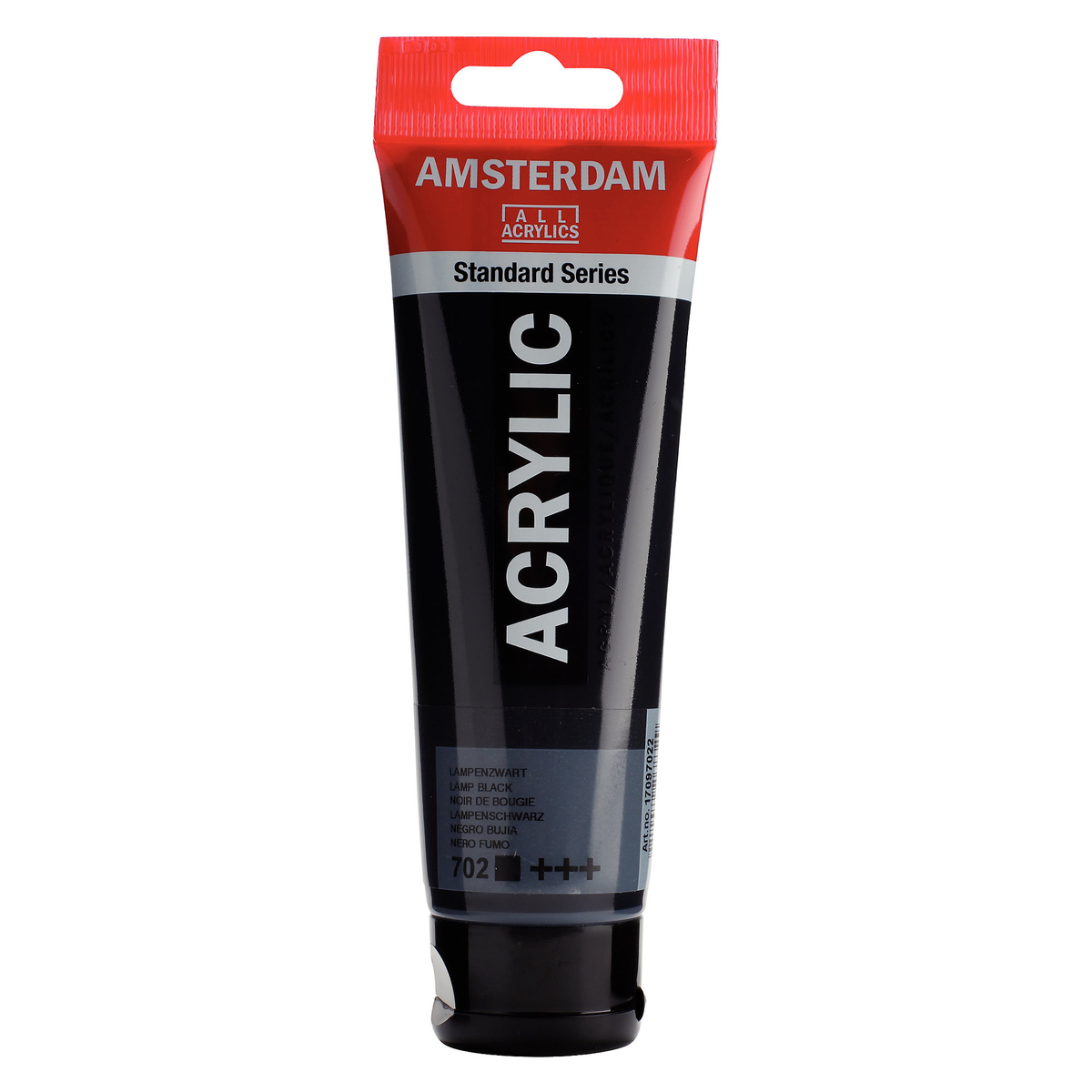 Opaciteten anges på följande vis: tom fyrkant = transparent / genomskinlig, tvärkorsad fyrkant = semitransparent / halvgenomskinlig, halvfylld fyrkant = semiopak /halvtäckande, fylld fyrkant = opak / täckande. Lamp Black / Kimrök.Artikelnummer