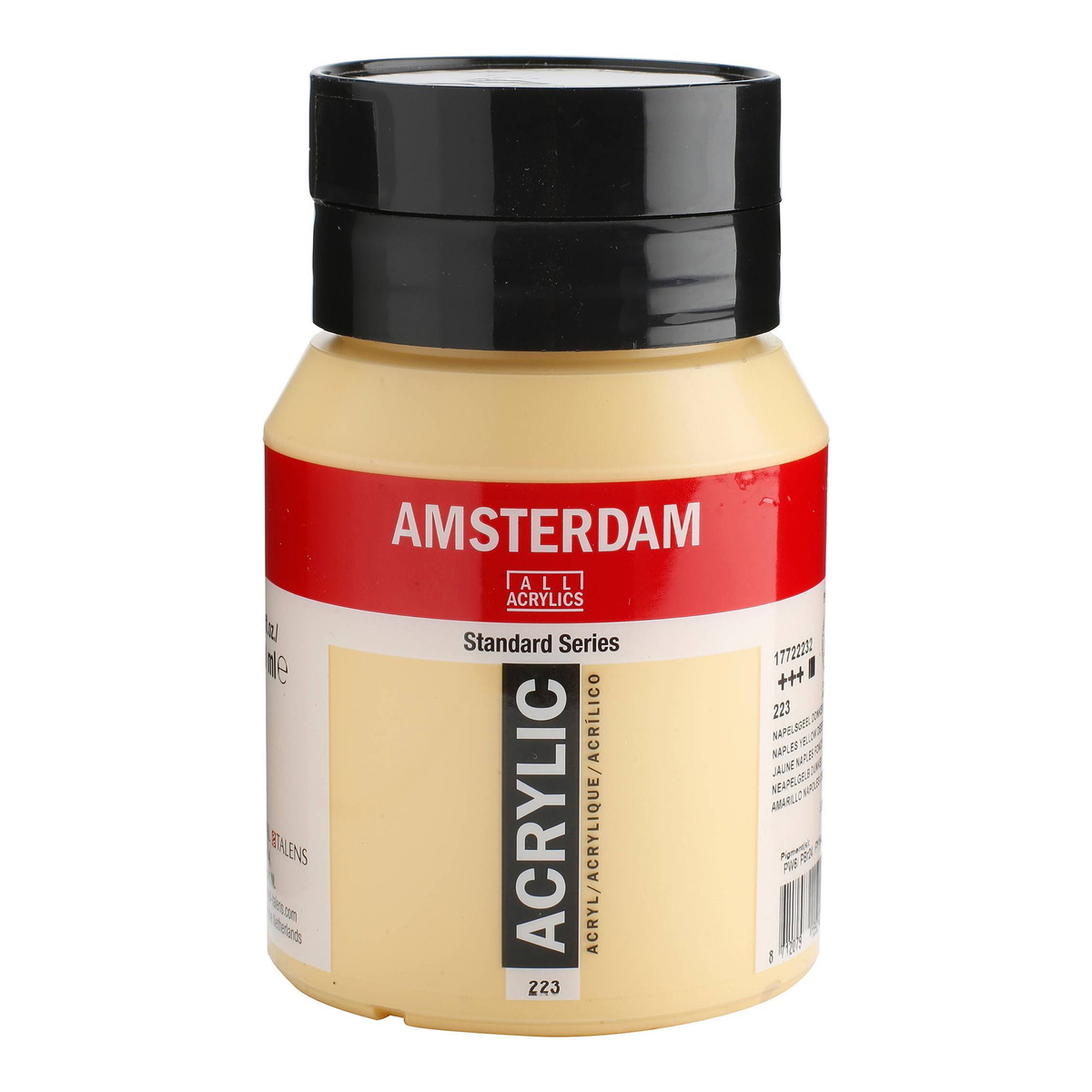 Opaciteten anges på följande vis: tom fyrkant = transparent / genomskinlig, tvärkorsad fyrkant = semitransparent / halvgenomskinlig, halvfylld fyrkant = semiopak /halvtäckande, fylld fyrkant = opak / täckande. 223 Naples Yellow Deep.Artikelnummer
