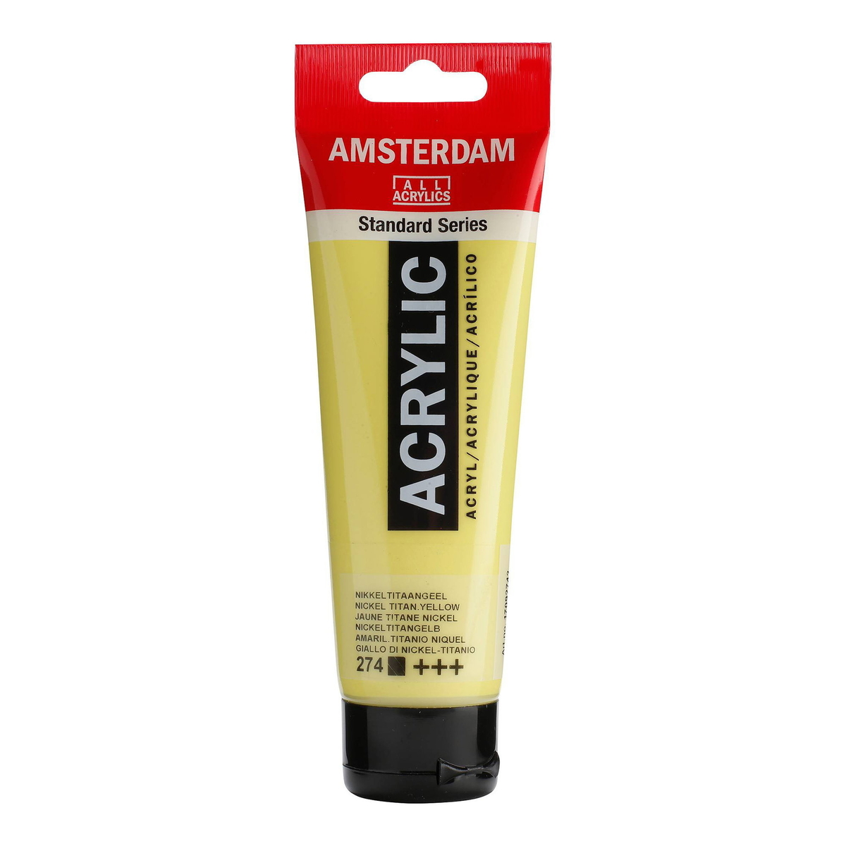 Opaciteten anges på följande vis: tom fyrkant = transparent / genomskinlig, tvärkorsad fyrkant = semitransparent / halvgenomskinlig, halvfylld fyrkant = semiopak /halvtäckande, fylld fyrkant = opak / täckande. 274 Nickel titanium yellow.Artikelnummer