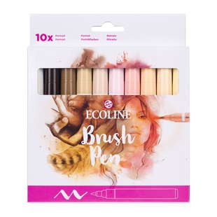 Ecoline Brush Pen Set Portrait innehåller följande färger: 226 Pastel yellow, 420 Beige, 258 Apricot, 381 Pastel red, 390 Pastel rose, 374 Pink beige, 439 Sepia light, 416 Sepia, 440 Sepia deep och 728 Warm grey light.Här finns ingen extra information som du kan behöva i ditt skapande.
