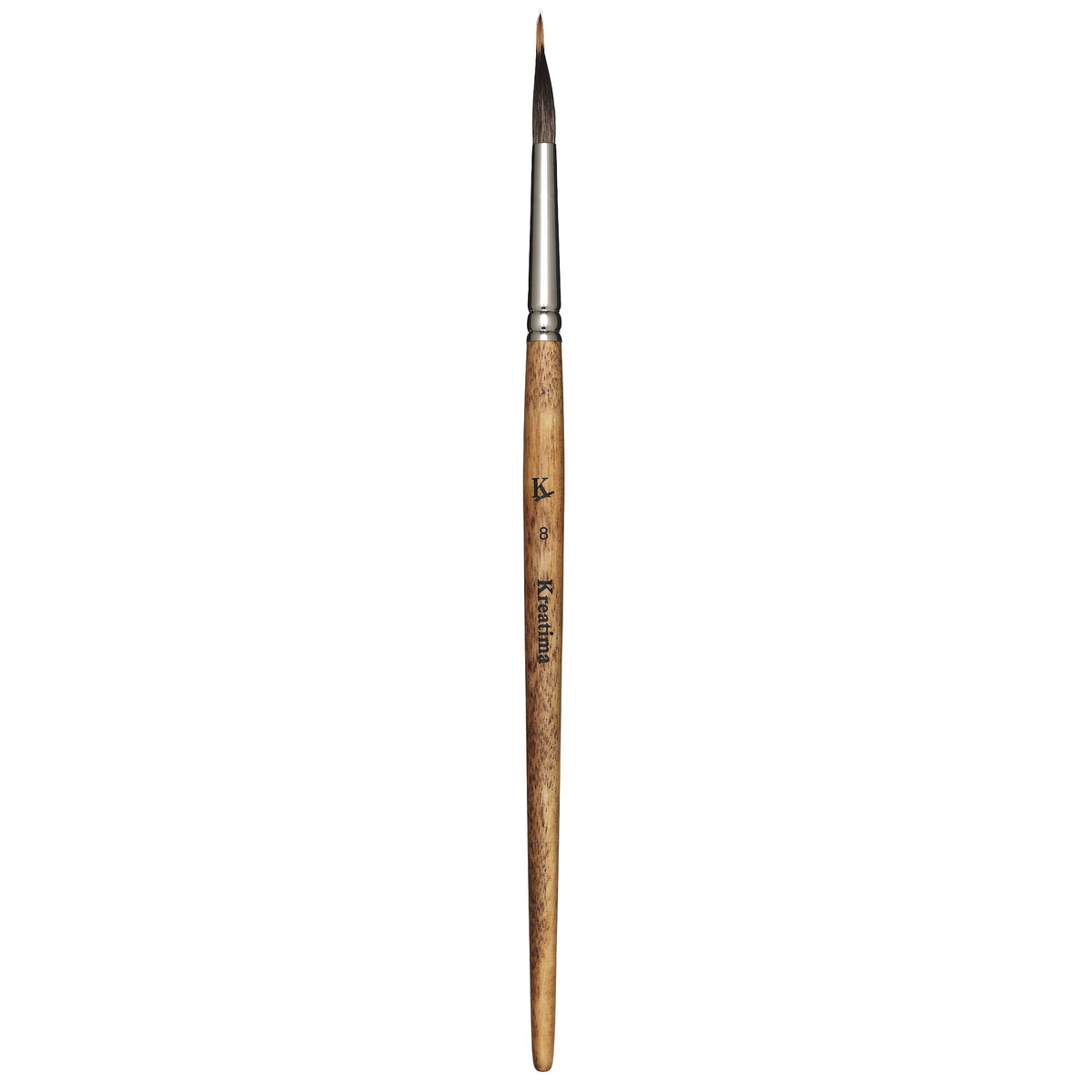 Kreatima Watercolour Reservoir Liner är en lite speciell pensel där borstet börjar i runt utförande, men slutar i en lång tunn spets. Som namnet antyder tar den upp mycket färg som du sen kan måla med i långa sammanhängande penseldrag.