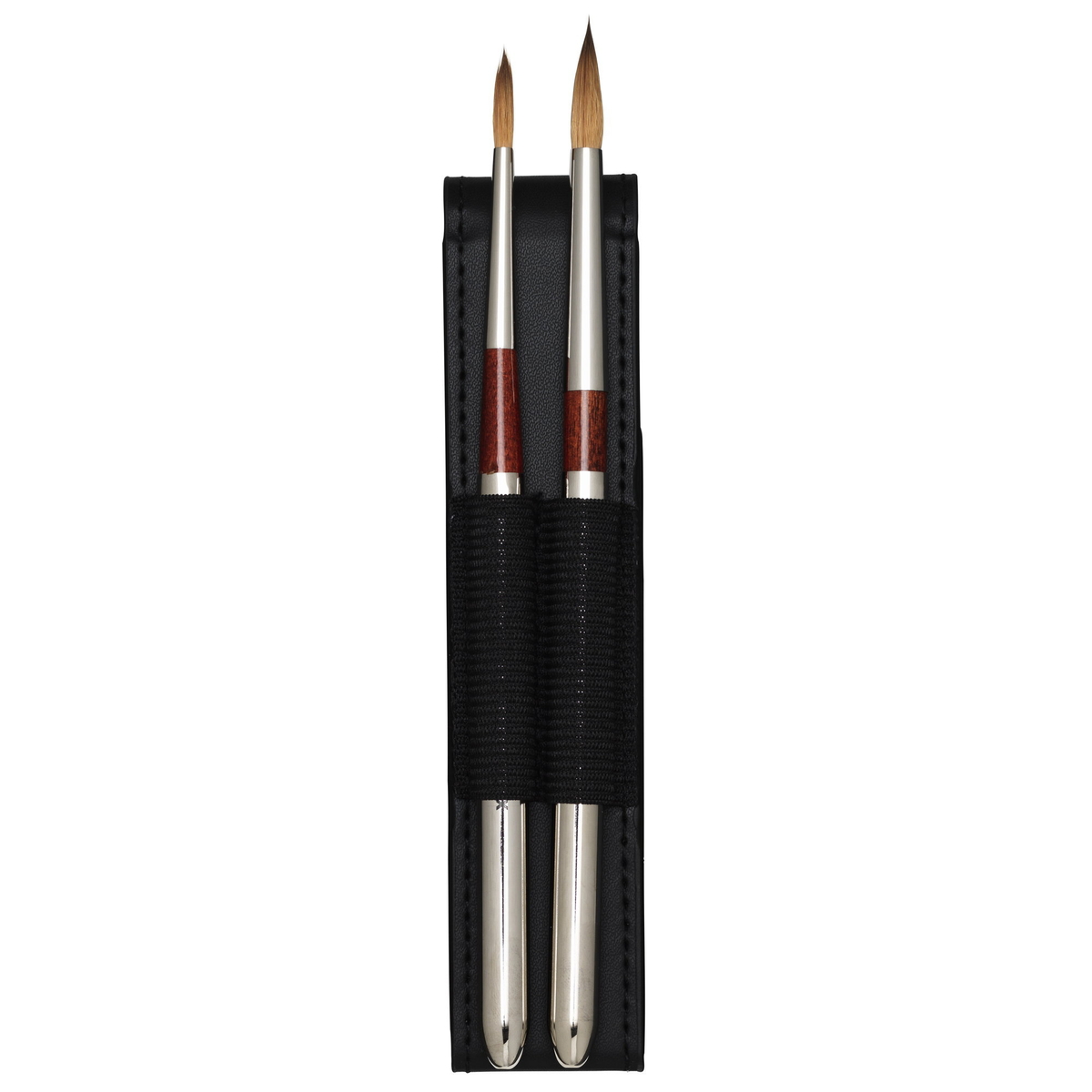 Skaften på penslarna är av metall som kan tas loss från penselns framdel, för att sen skruvas fast framtill för att bli ett skyddande höljde för penselspetsen. Penselhylsan är tillverkad av nickelpläterad mässing.