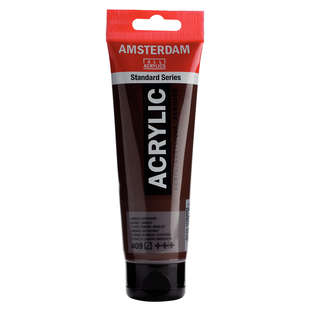 Opaciteten anges på följande vis: tom fyrkant = transparent / genomskinlig, tvärkorsad fyrkant = semitransparent / halvgenomskinlig, halvfylld fyrkant = semiopak /halvtäckande, fylld fyrkant = opak / täckande. Burnt Umber / Bränd umbra.Artikelnummer